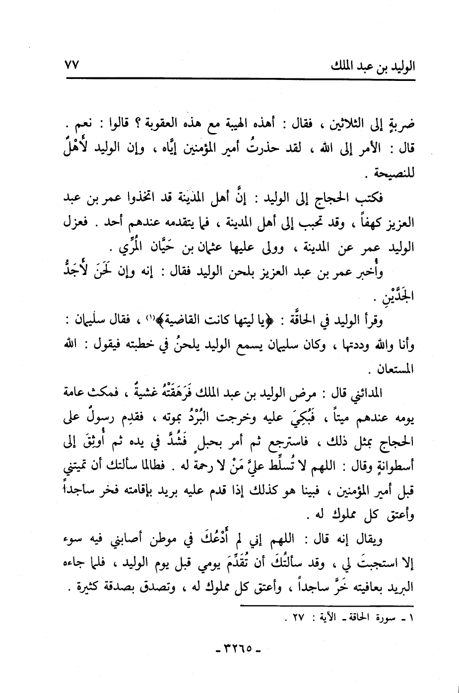 وقرأ الوليد في الحاقة: (يَا لَيْتَهَا كانت القاضية) [1] ، فقال سليمان: