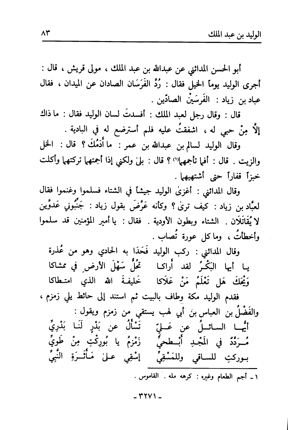 وقال المدائني: ركب الوليد فحدا به الحادي وهو من عذرة