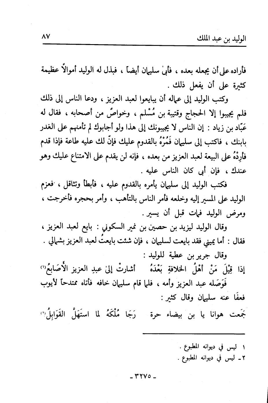 إذا قيل من أهل الخلافة بعده ... أشارت إلى عبد العزيز الأصابع [1]