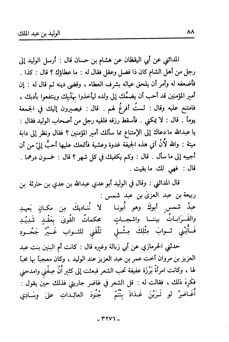 المدائني عن أبي اليقظان عن هشام بن حسان قال: أرسل الوليد إلى رجل من أهل الشام كان ذا فضل وعقل فقال له: ما عطاؤك؟ قال: كذا.