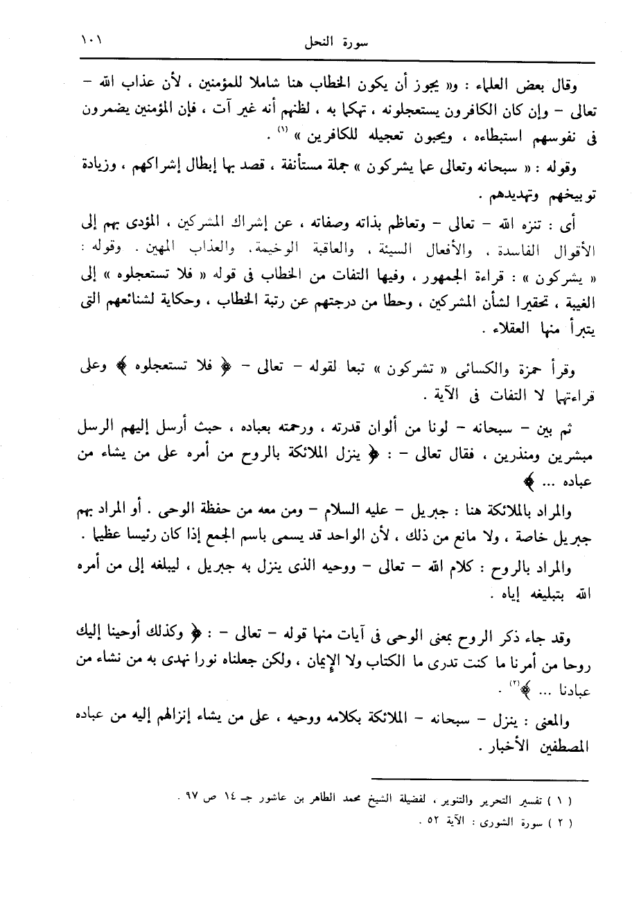(1) تفسير التحرير والتنوير، لفضيلة الشيخ محمد الطاهر بن عاشور ج 14 ص 97.