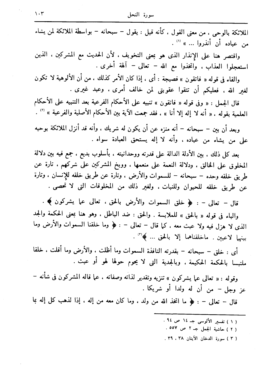 قال- تعالى-: خَلَقَ السَّماواتِ وَالْأَرْضَ بِالْحَقِّ، تَعالى عَمَّا يُشْرِكُونَ.