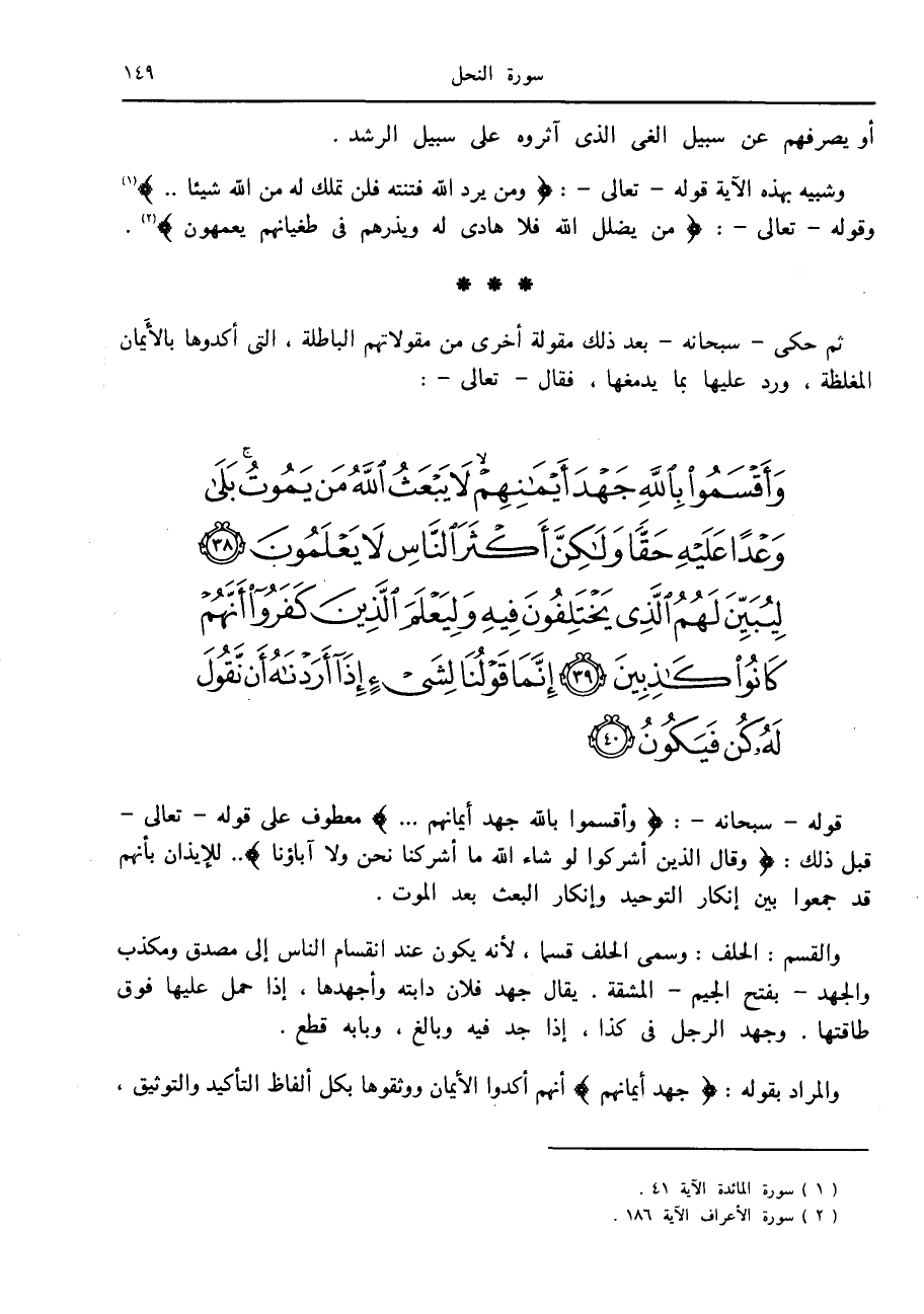 وَأَقْسَمُوا بِاللَّهِ جَهْدَ أَيْمانِهِمْ لا يَبْعَثُ اللَّهُ مَنْ يَمُوتُ بَلى وَعْداً عَلَيْهِ حَقًّا وَلكِنَّ أَكْثَرَ النَّاسِ لا يَعْلَمُونَ (38) لِيُبَيِّنَ لَهُمُ الَّذِي يَخْتَلِفُونَ فِيهِ وَلِيَعْلَمَ الَّذِينَ كَفَرُوا أَنَّهُمْ كانُوا كاذِبِينَ (39) إِنَّما قَوْلُنا لِشَيْءٍ إِذا أَرَدْناهُ أَنْ نَقُولَ لَهُ كُنْ فَيَكُونُ (40)