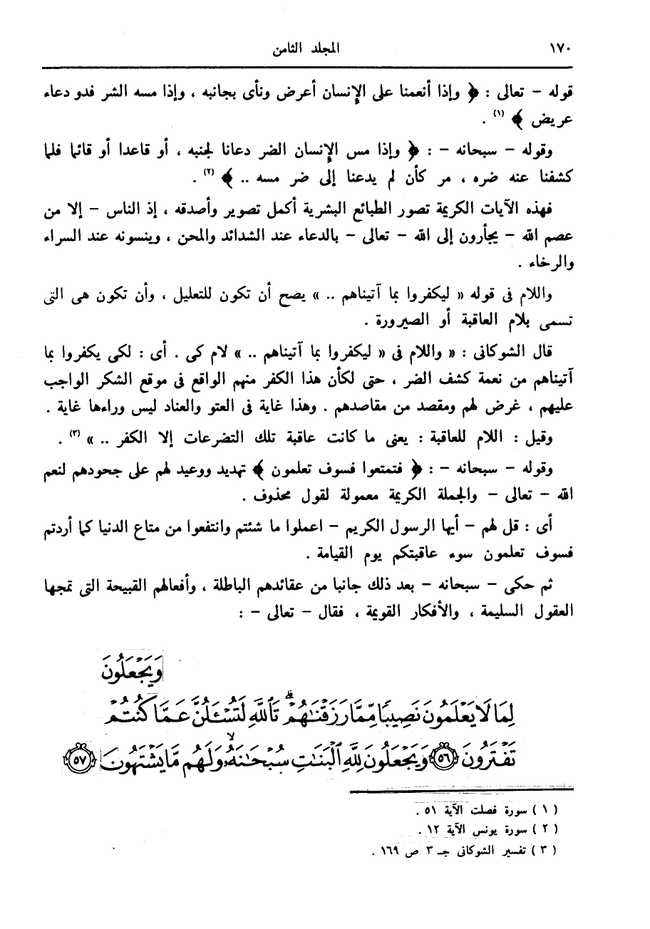 قال الشوكانى: «واللام في «ليكفروا بما آتيناهم..» لام كي. أى: لكي يكفروا بما آتيناهم من نعمة كشف الضر، حتى لكأن هذا الكفر منهم الواقع في موقع الشكر الواجب عليهم، غرض لهم ومقصد من مقاصدهم. وهذا غاية في العتو والعناد ليس وراءها غاية.