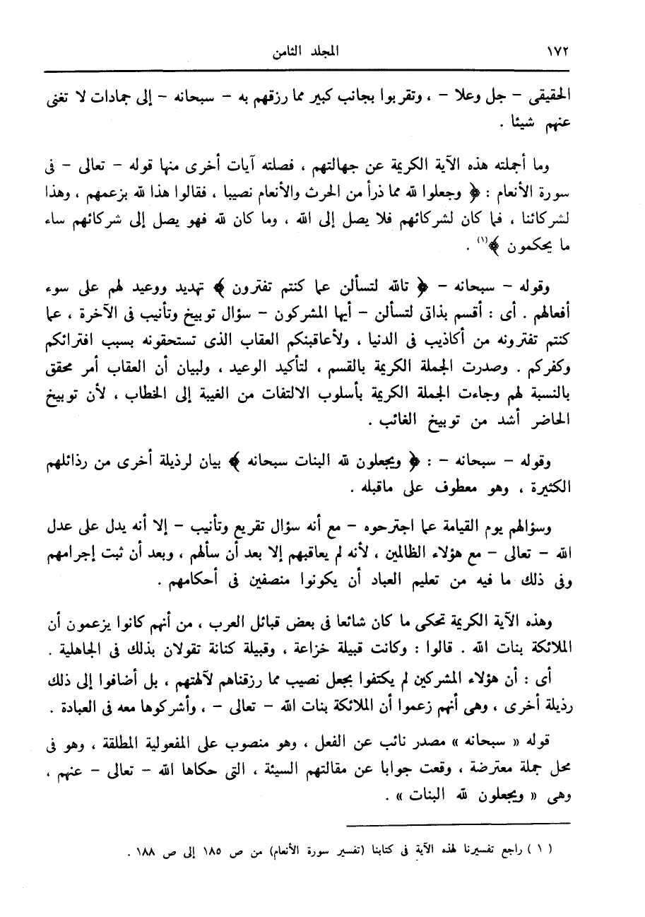 (1) راجع تفسيرنا لهذه الآية في كتابنا (تفسير سورة الأنعام) من ص 185 إلى ص 188.