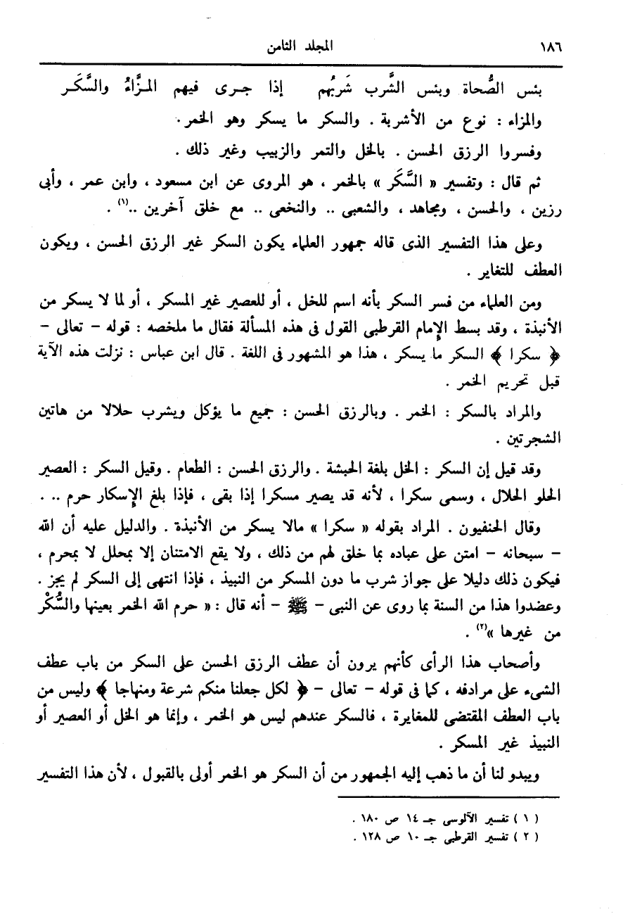 ويبدو لنا أن ما ذهب إليه الجمهور من أن السكر هو الخمر أولى بالقبول، لأن هذا التفسير