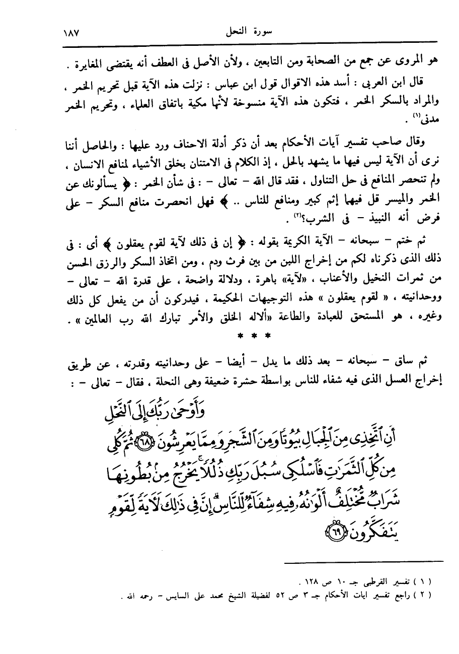 (2) راجع تفسير آيات الأحكام ج 3 ص 52 لفضيلة الشيخ محمد على السائس- رحمه الله.