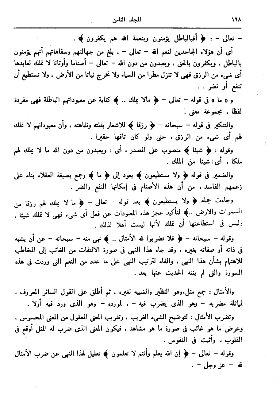 - تعالى-: أَفَبِالْباطِلِ يُؤْمِنُونَ وَبِنِعْمَتِ اللَّهِ هُمْ يَكْفُرُونَ.