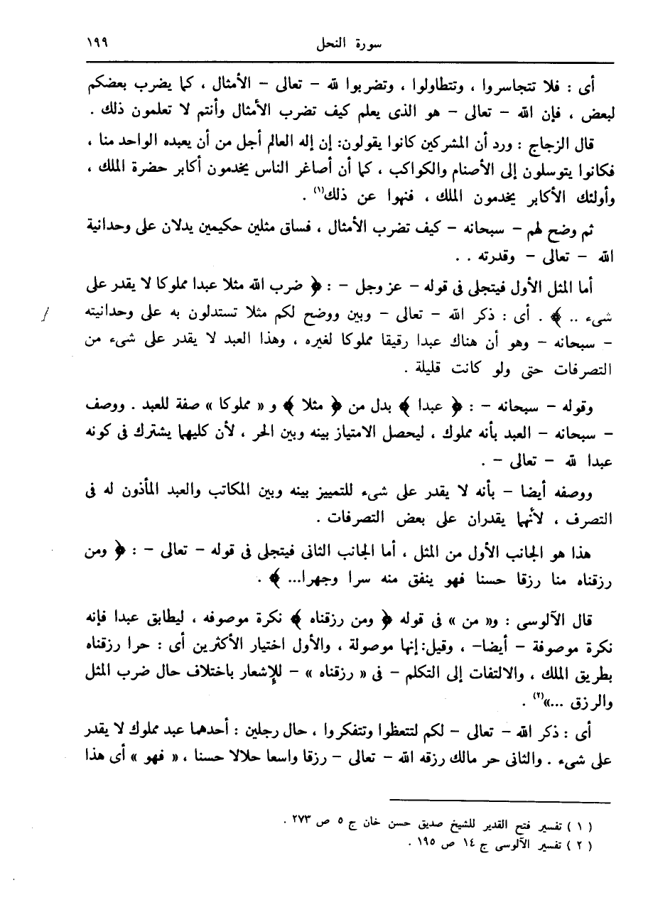 (1) تفسير فتح القدير للشيخ صديق حسن خان ج 5 ص 273.