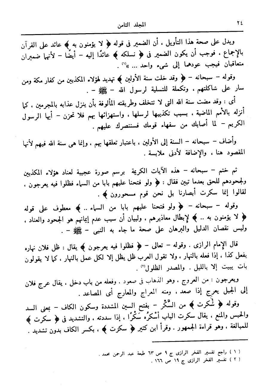 (1) راجع تفسير الفخر الرازي ج 9 ص 63 طبعة عبد الرحمن محمد.