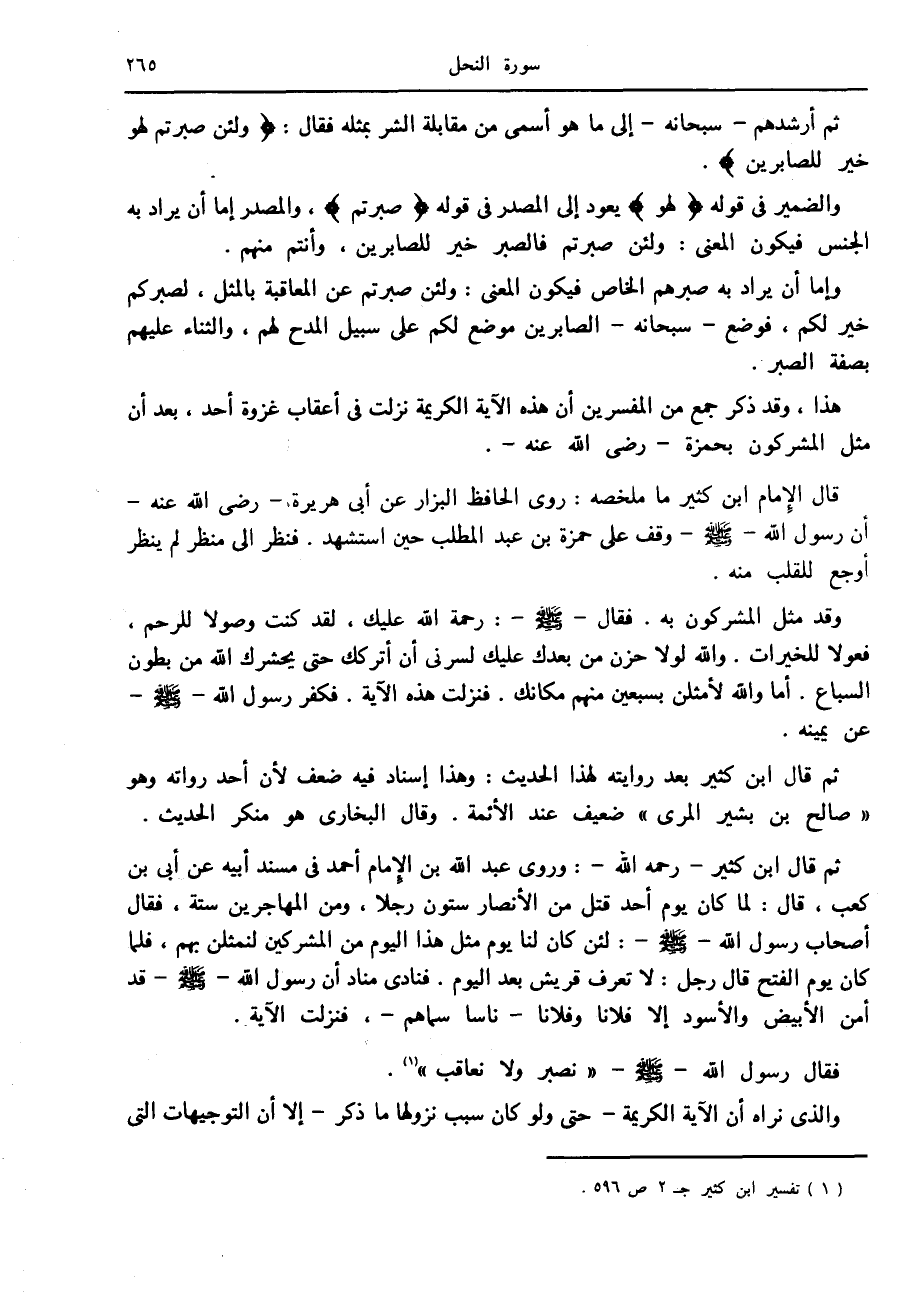 هذا، وقد ذكر جمع من المفسرين أن هذه الآية الكريمة نزلت في أعقاب غزوة أحد، بعد أن مثل المشركون بحمزة- رضى الله عنه-.