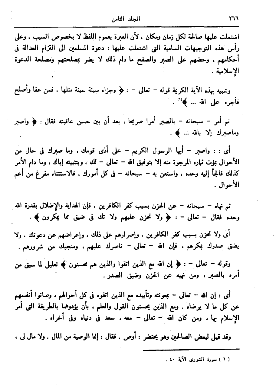 وشبيه بهذه الآية الكريمة قوله- تعالى-: وَجَزاءُ سَيِّئَةٍ سَيِّئَةٌ مِثْلُها، فَمَنْ عَفا وَأَصْلَحَ فَأَجْرُهُ عَلَى اللَّهِ ... «1» .