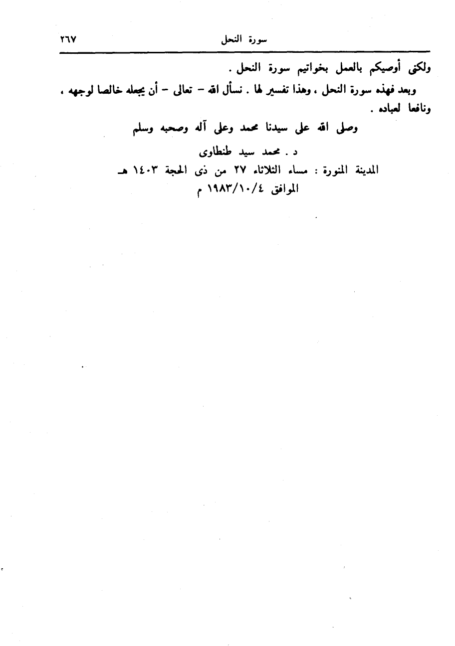 وصلى الله على سيدنا محمد وعلى آله وصحبه وسلم د. محمد سيد طنطاوى المدينة المنورة: مساء الثلاثاء 27 من ذي الحجة 1403 هـ الموافق 4/ 10/ 1983 م