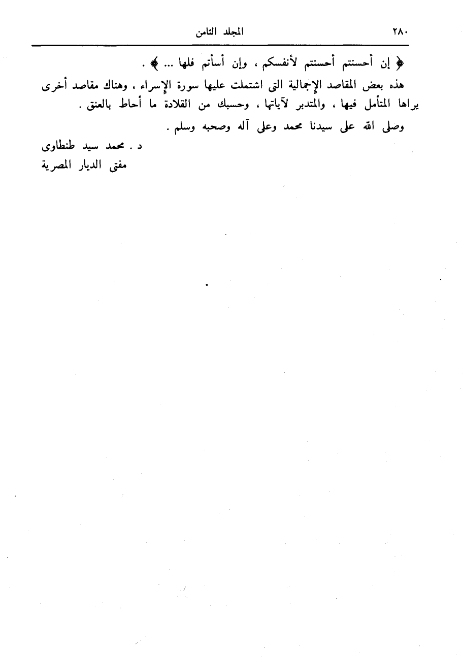هذه بعض المقاصد الإجمالية التي اشتملت عليها سورة الإسراء، وهناك مقاصد أخرى يراها المتأمل فيها، والمتدبر لآياتها، وحسبك من القلادة ما أحاط بالعنق.