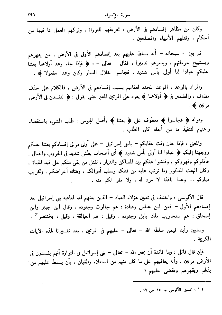 (1) تفسير الآلوسى ج 15 ص 17.