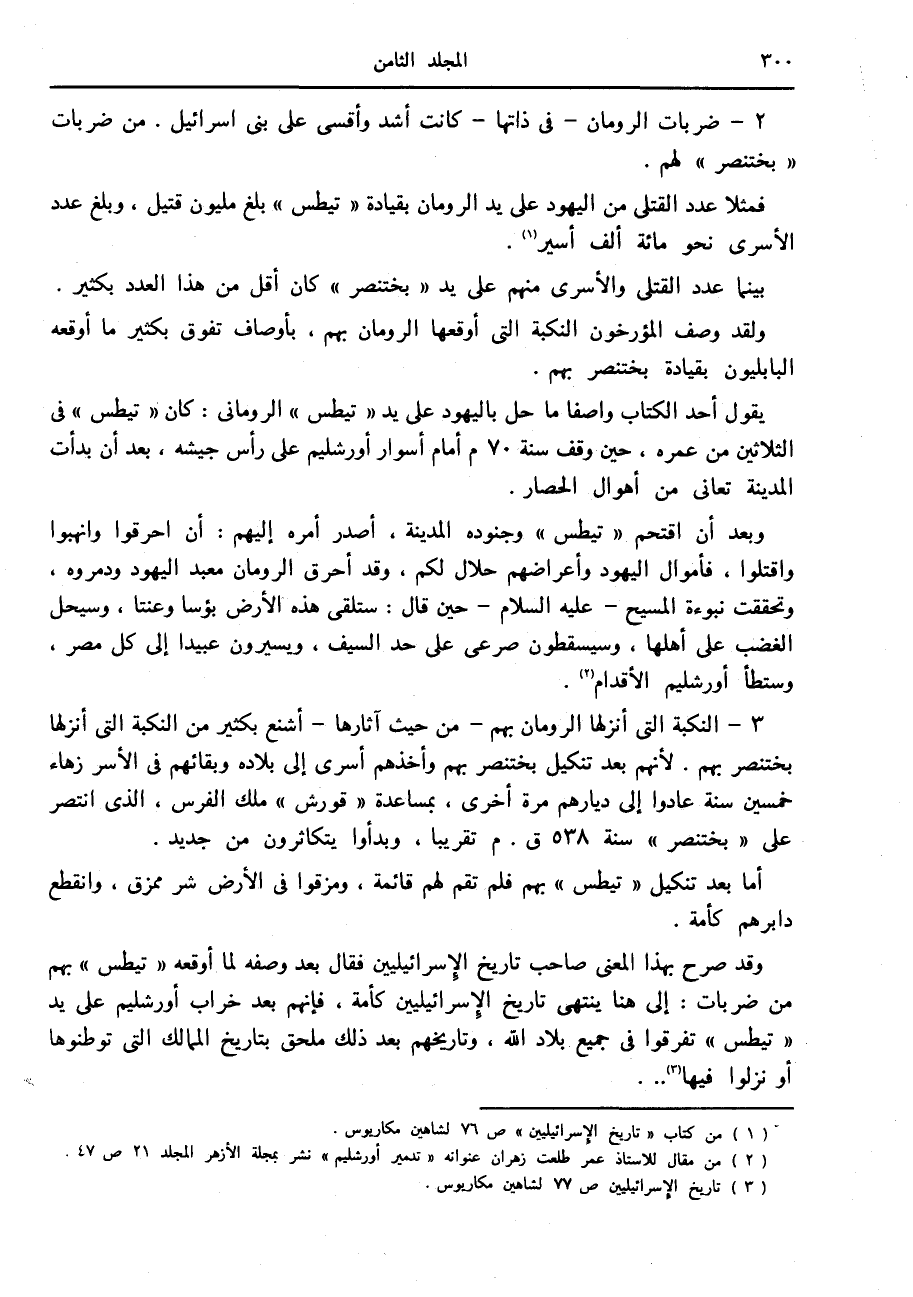 (2) من مقال للاستاذ عمر طلعت زهران عنوانه «تدمير أورشليم» نشر بمجلة الأزهر المجلد 21 ص 47.