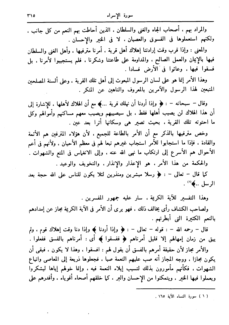 وقال- سبحانه-: وَإِذا أَرَدْنا أَنْ نُهْلِكَ قَرْيَةً ...