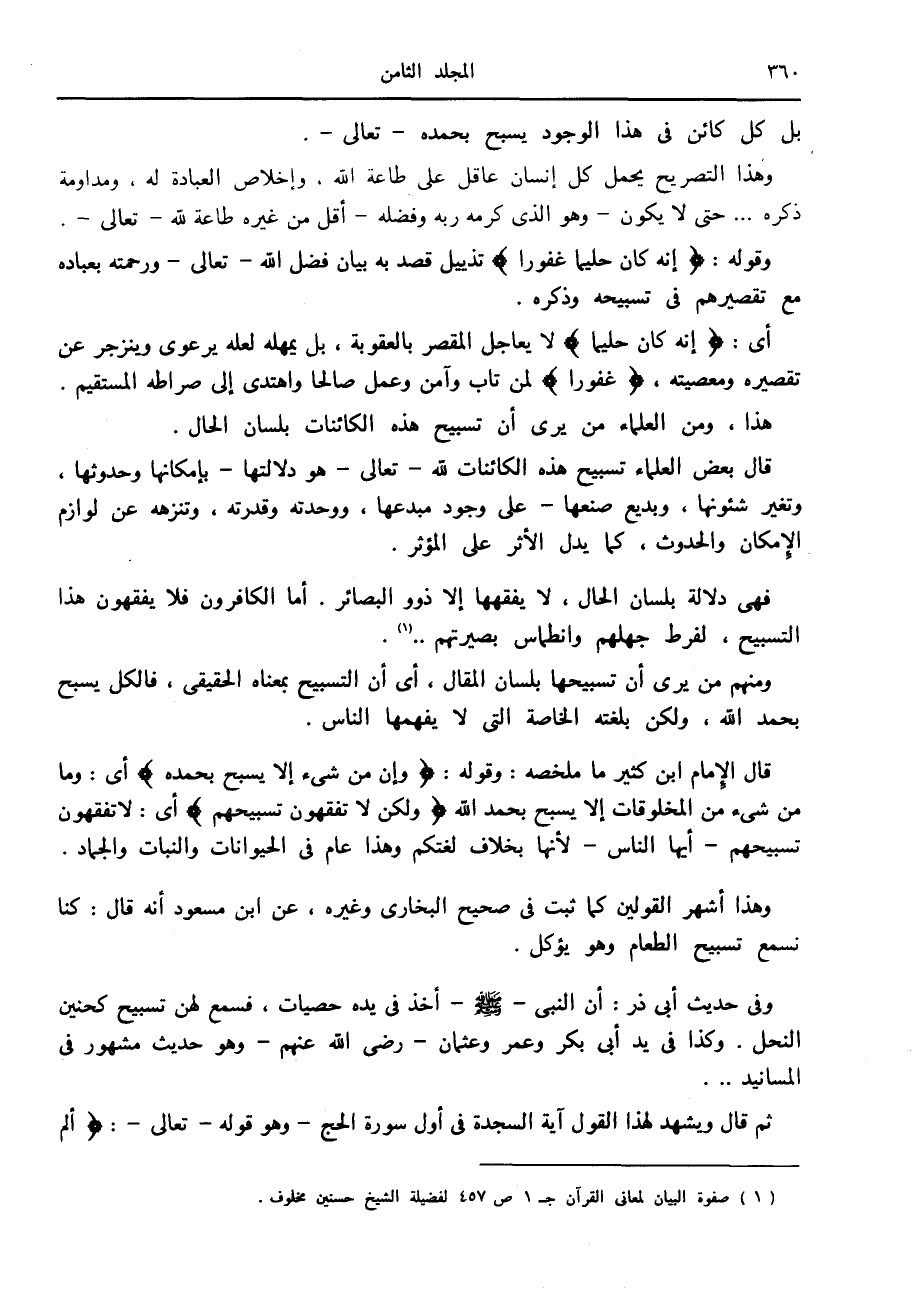 (1) صفوة البيان لمعانى القرآن ج 1 ص 457 لفضيلة الشيخ حسنين مخلوف.