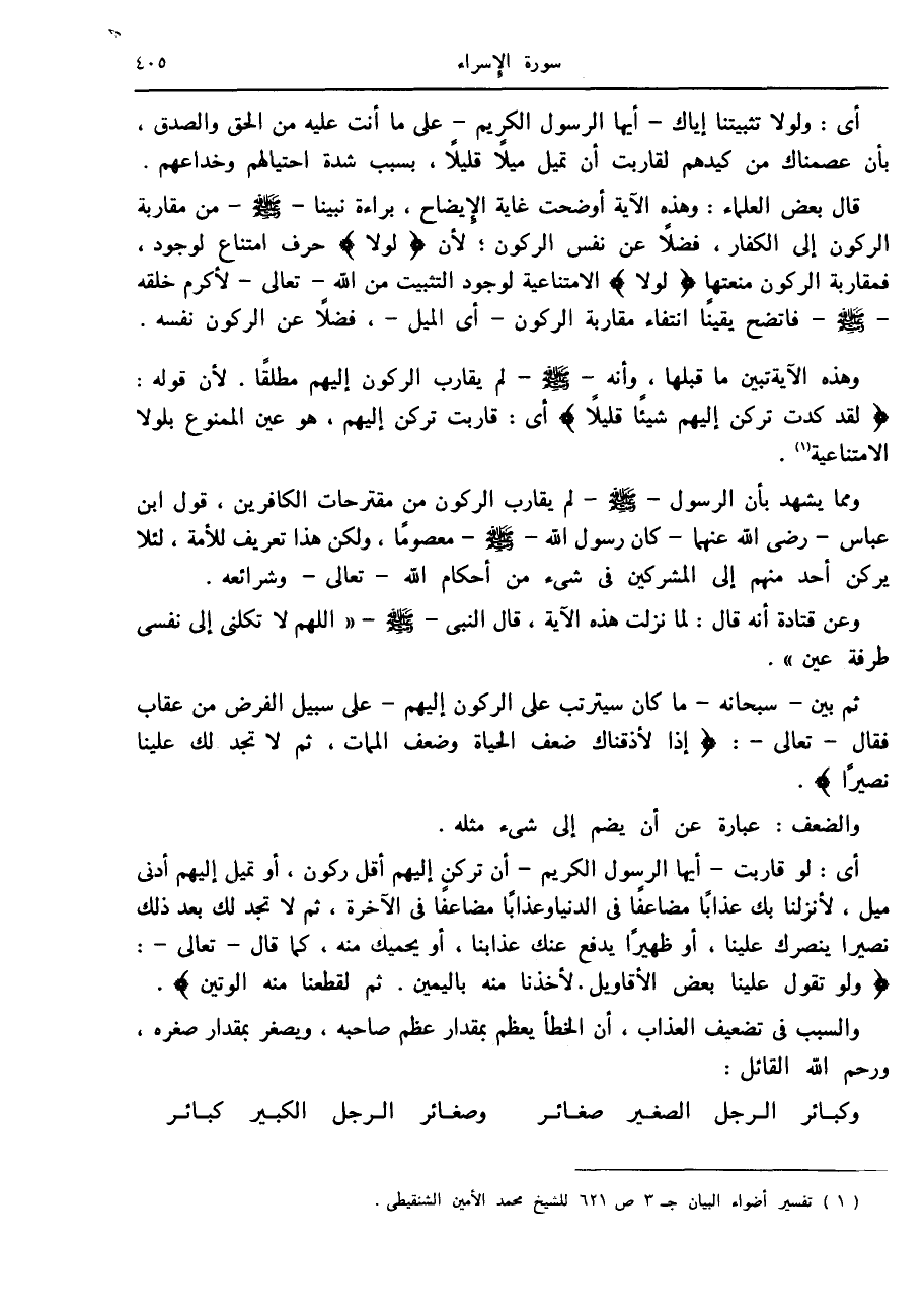 (1) تفسير أضواء البيان ج 3 ص 621 للشيخ محمد الأمين الشنقيطى.