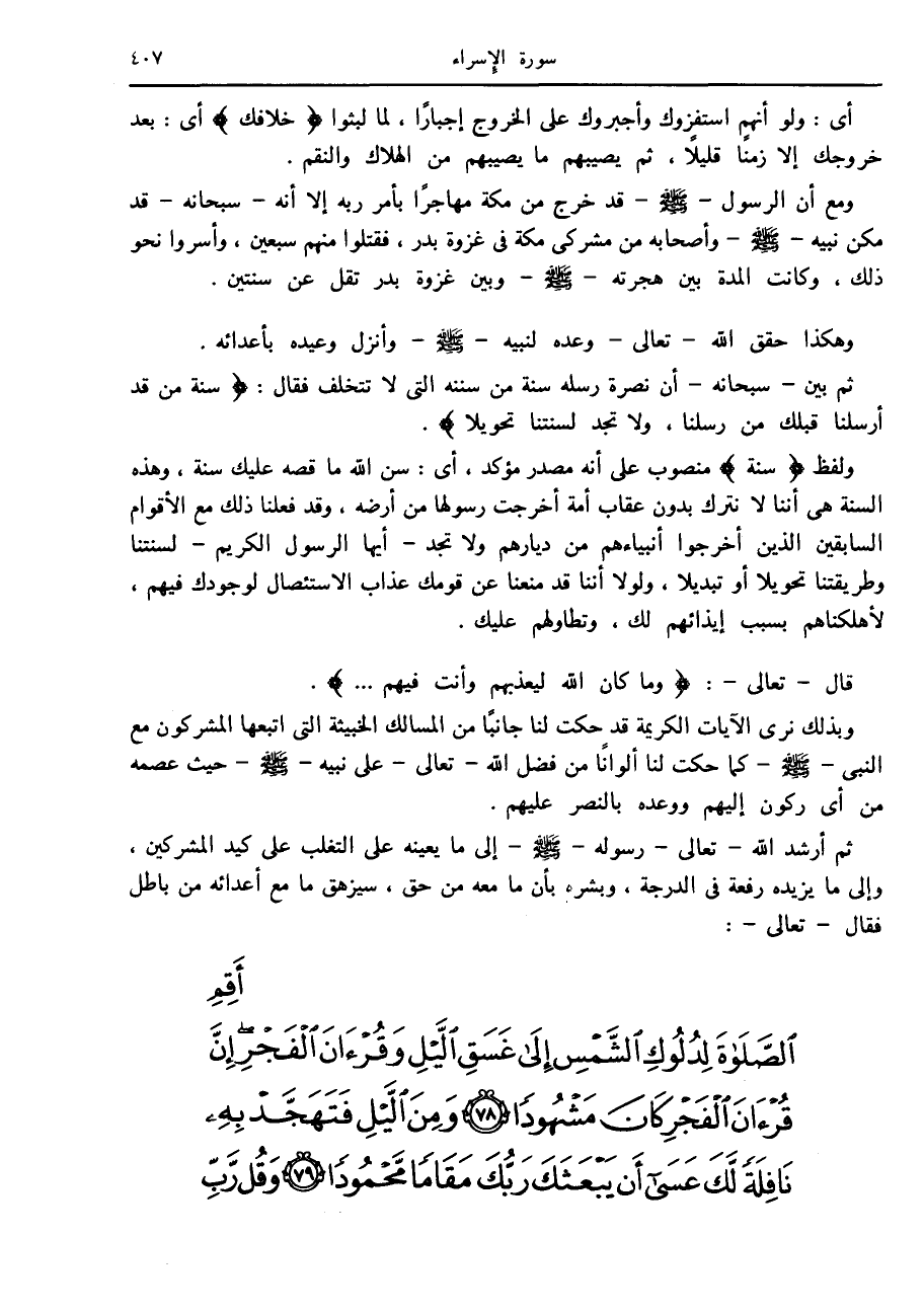 ومع أن الرسول صلى الله عليه وسلم قد خرج من مكة مهاجرا بأمر ربه إلا أنه- سبحانه- قد مكن نبيه صلى الله عليه وسلم وأصحابه من مشركي مكة في غزوة بدر، فقتلوا منهم سبعين، وأسروا نحو ذلك، وكانت المدة بين هجرته صلى الله عليه وسلم وبين غزوة بدر تقل عن سنتين.