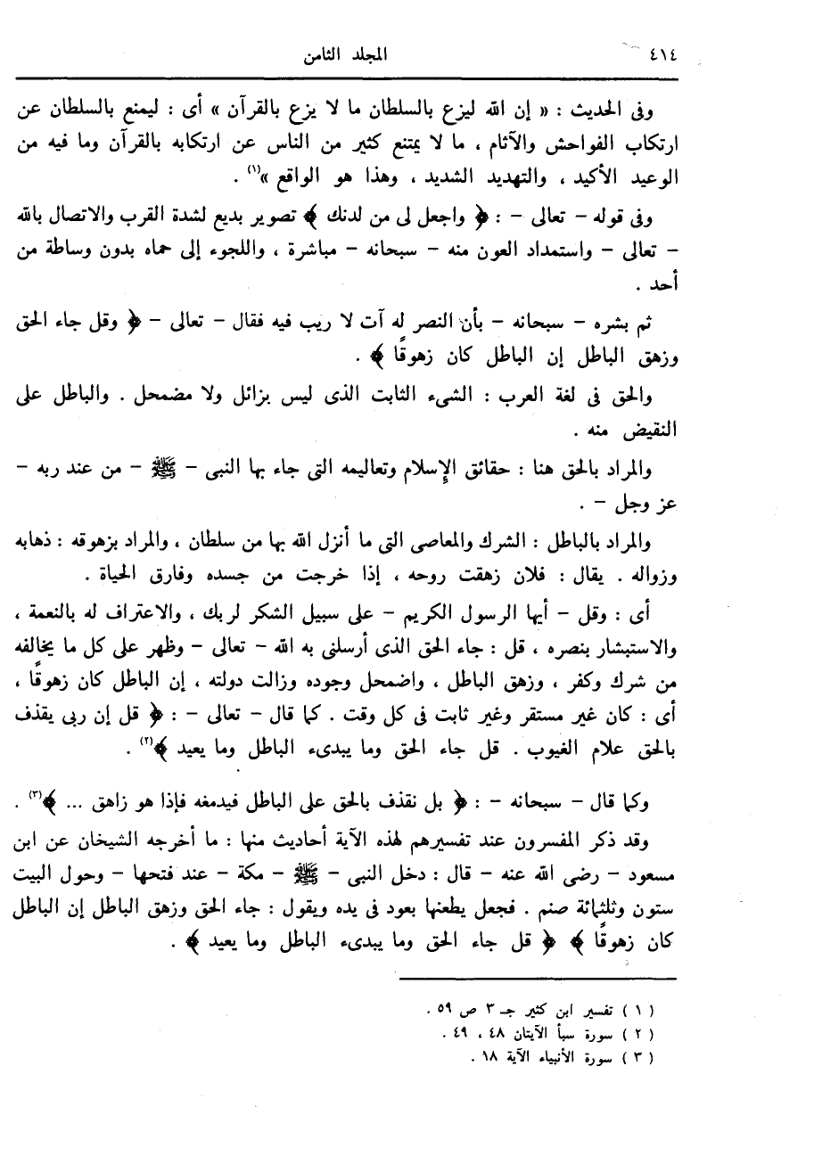 (3) سورة سبأ الآيتان 48، 49.