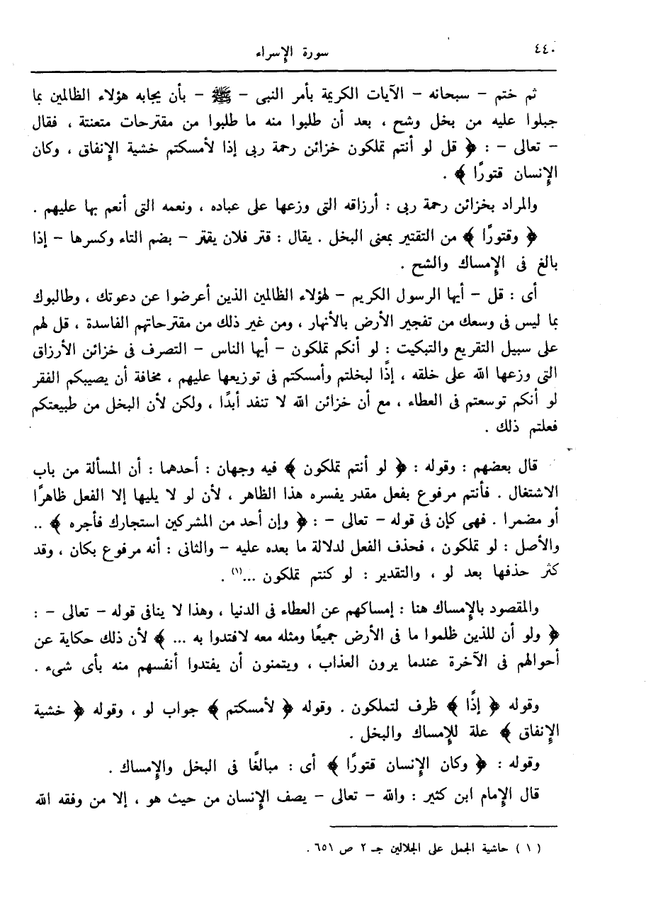 (1) حاشية الجمل على الجلالين ج 2 ص 651.