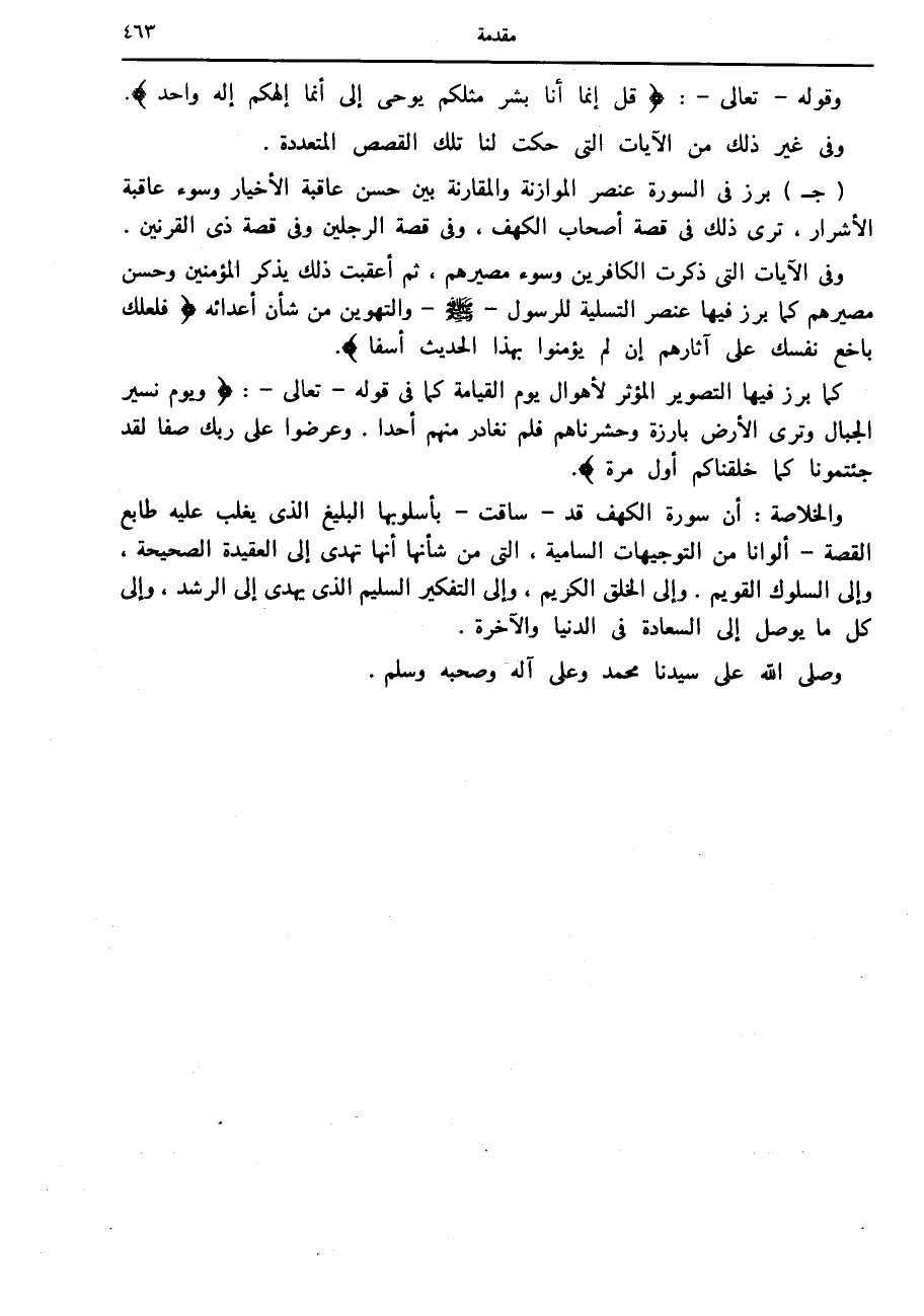 (ج) برز في السورة عنصر الموازنة والمقارنة بين حسن عاقبة الأخيار وسوء عاقبة الأشرار، ترى ذلك في قصة أصحاب الكهف، وفي قصة الرجلين وفي قصة ذي القرنين.