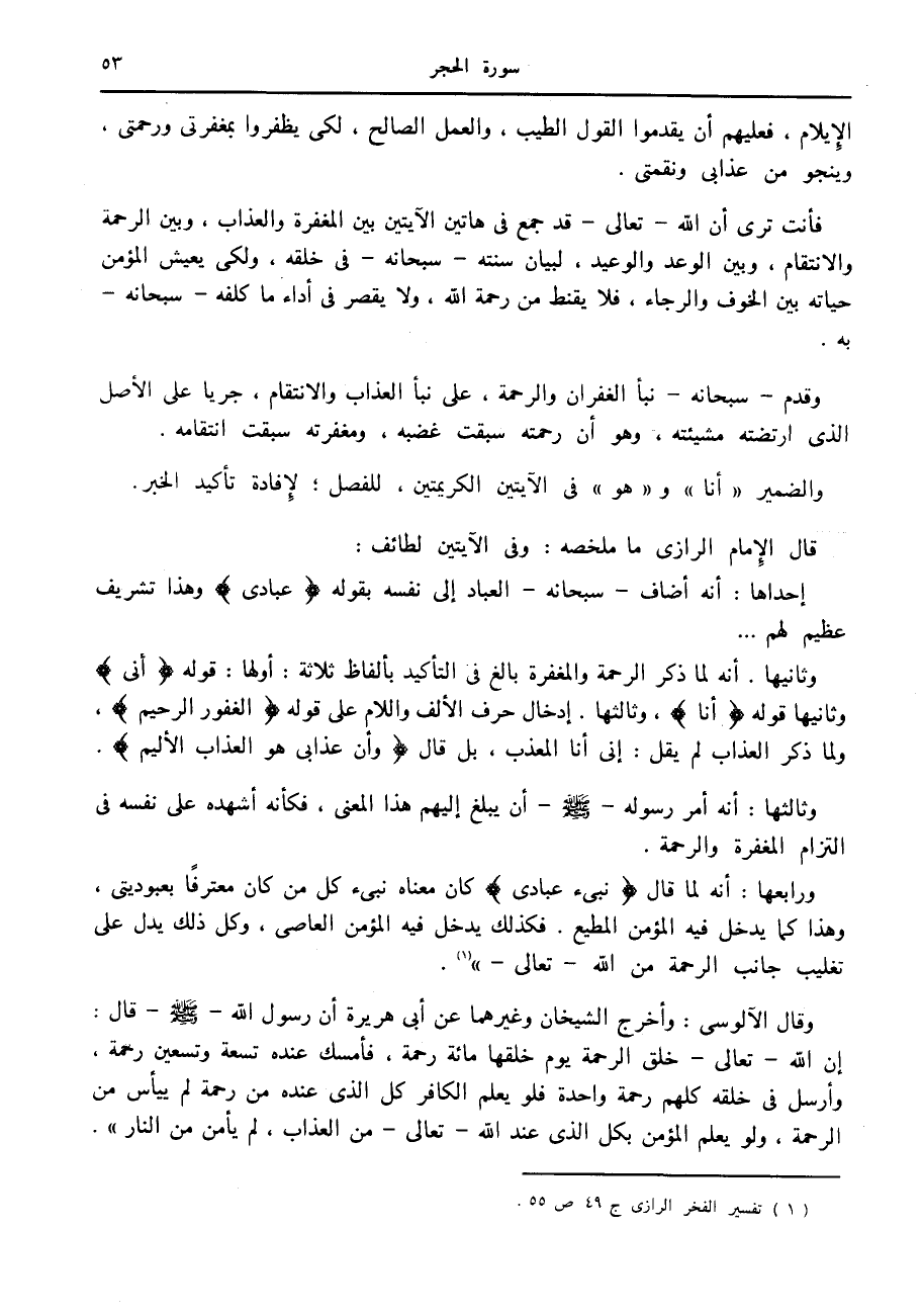 (1) تفسير الفخر الرازي ج 49 ص 55.