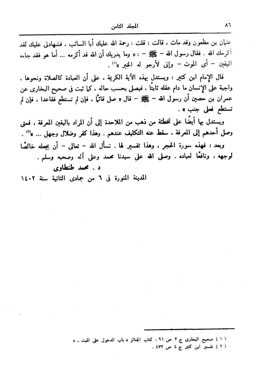 د. محمد طنطاوى المدينة المنورة في 6 من جمادى الثانية سنة 1402
