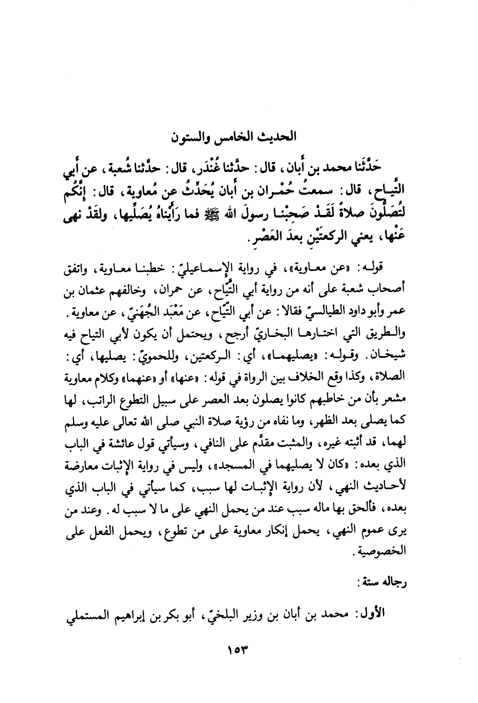 حَدَّثَنَا مُحَمَّدُ بْنُ أَبَانَ، قَالَ: حَدَّثَنَا غُنْدَرٌ، قَالَ: حَدَّثَنَا شُعْبَةُ، عَنْ أَبِي التَّيَّاحِ، قَالَ: سَمِعْتُ حُمْرَانَ بْنَ أَبَانَ يُحَدِّثُ عَنْ مُعَاوِيَةَ، قَالَ: إِنَّكُمْ لَتُصَلُّونَ صَلاَةً لَقَدْ صَحِبْنَا رَسُولَ اللَّهِ -صلى الله عليه وسلم- فَمَا رَأَيْنَاهُ يُصَلِّيهَا، وَلَقَدْ نَهَى عَنْهُمَا، يَعْنِي الرَّكْعَتَيْنِ بَعْدَ الْعَصْرِ.