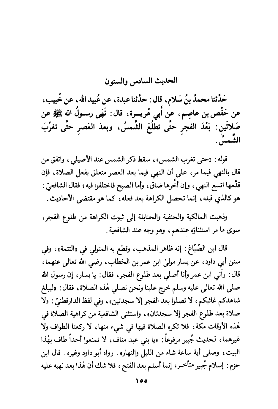 حَدَّثَنَا مُحَمَّدُ بْنُ سَلاَمٍ، قَالَ: حَدَّثَنَا عَبْدَةُ عَنْ عُبَيْدِ اللَّهِ، عَنْ خُبَيْبٍ، عَنْ حَفْصِ بْنِ عَاصِمٍ، عَنْ أَبِي هُرَيْرَةَ، قَالَ: نَهَى رَسُولُ اللَّهِ -صلى الله عليه وسلم- عَنْ صَلاَتَيْنِ: بَعْدَ الْفَجْرِ حَتَّى تَطْلُعَ الشَّمْسُ، وَبَعْدَ الْعَصْرِ حَتَّى تَغْرُبَ الشَّمْسُ.