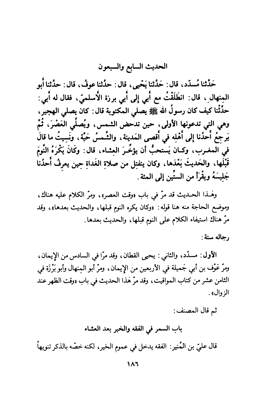 باب السمر في الفقه والخير بعد العشاء