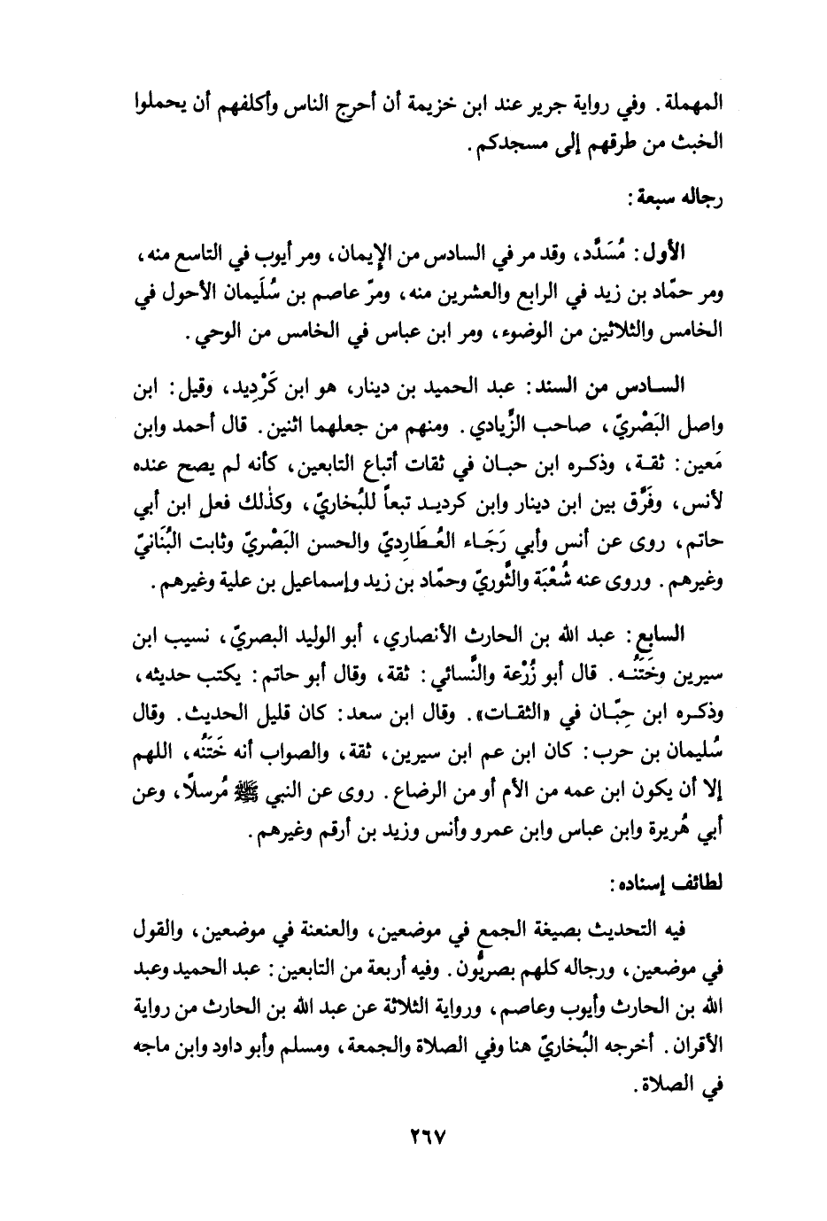 الأول: مُسَدَّد، وقد مرّ في السادس من الإيمان، ومرّ أيوب في التاسع منه، ومرّ حمّاد بن زيد في الرابع والعشرين منه، ومرّ عاصم بن سُلَيمان الأحول في الخامس والثلاثين من الوضوء، ومرّ ابن عباس في الخامس من الوحي.