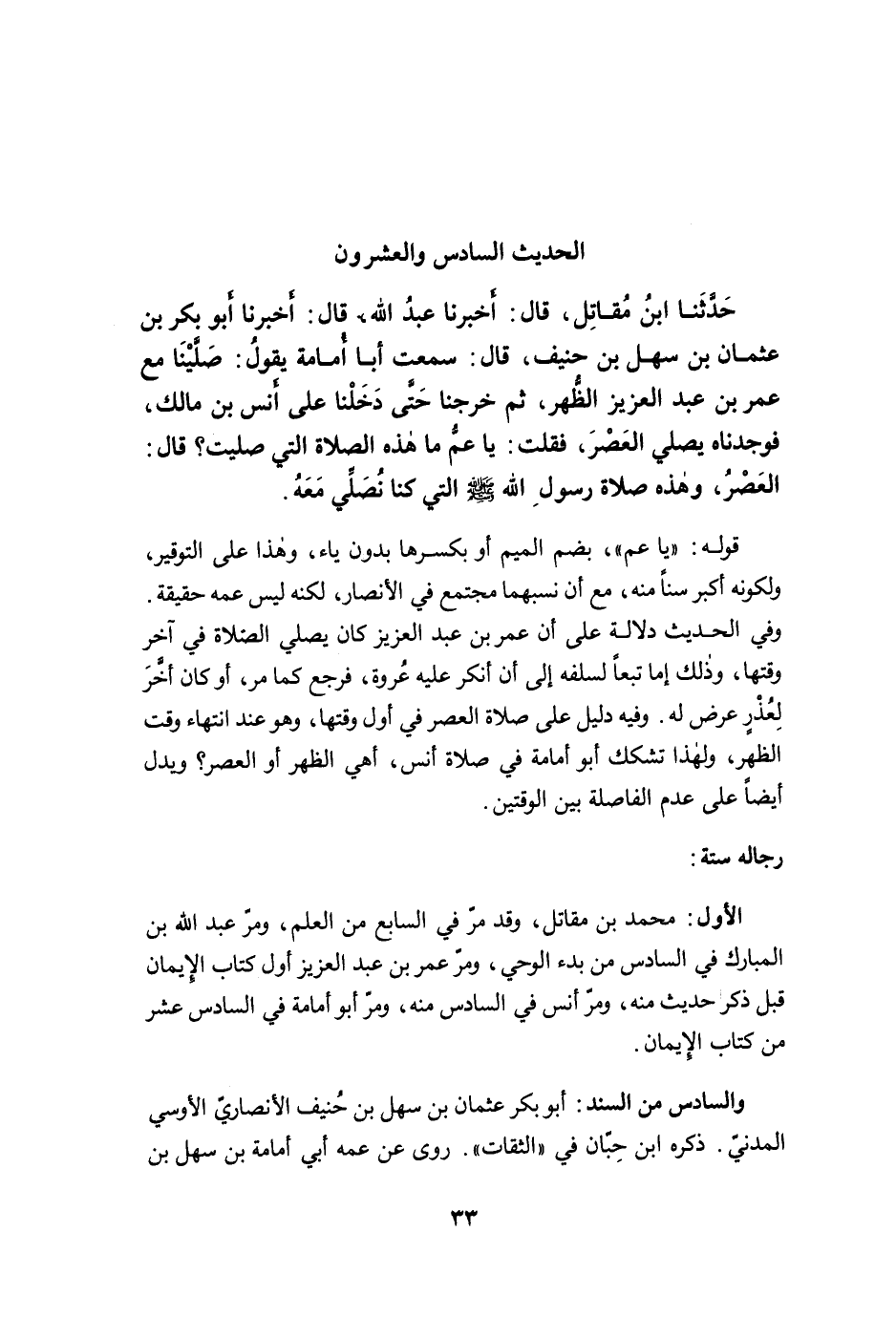 الأول: محمد بن مقاتل، وقد مرّ في السابع من العلم، ومرّ عبد الله بن المبارك في السادس من بدء الوحي، ومرّ عمر بن عبد العزيز أول كتاب الإيمان قبل ذكر حديث منه، ومرّ أنس في السادس منه، ومرّ أبو أمامة في السادس عشر من كتاب الإيمان.