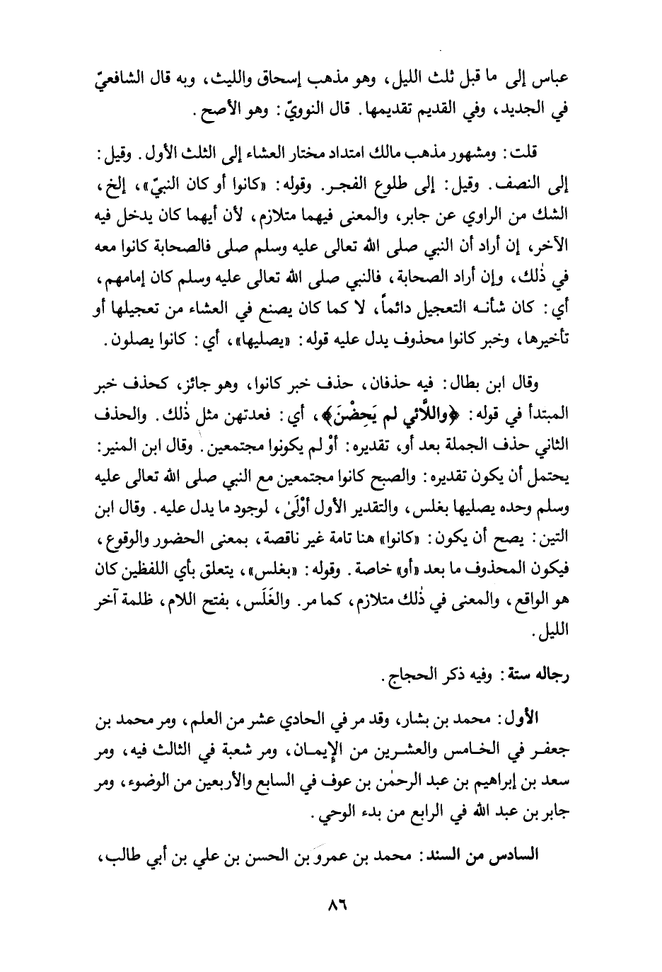قلت: ومشهور مذهب مالك امتداد مختار العشاء الى الثلث الأول. وقيل: إلى النصف. وقيل: إلى طلوع الفجر. وقوله: "كانوا أو كان النبيّ"، الخ، الشك من الراوي عن جابر، والمعنى فيهما متلازم، لأن أيهما كان يدخل فيه الآخر، ان أراد أن النبي صلى الله تعالى عليه وسلم صلى فالصحابة كانوا معه في ذلك، وإن أراد الصحابة، فالنبي صلى الله تعالى عليه وسلم كان إمامهم، أي: كان شأنه التعجيل دائمًا، لا كما كان يصنع في العشاء من تعجيلها أو تأخيرها، وخبر كانوا محذوف يدل عليه قوله: "يصليها"، أي: كانوا يصلون.
