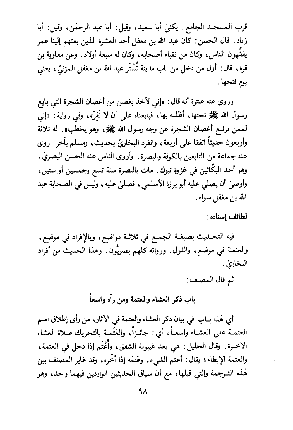 باب ذكر العشاء والعتمة ومن رآه واسعًا