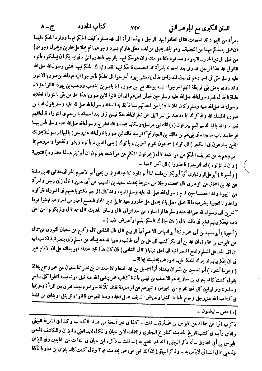 ذكر فيه اثرا عن سماك عن قابوس بن مخارق - قلت - كذا في غير نسخة من هذا الكتاب وكذا في المعرفة للبيهقي والذى رأيته في كتب تاريخ الحديث كتاريخ البخاري والثقات لابن حبان والكمال لعبد الغنى والميزان والكاشف للذهبي قابوس بن أبى المخارق - ثم ذكر البيهقى (انه غير محتج به) - قلت - ذكره ابن حبان في الثقات من التابعين وفى الميزان للذهبي قال النسائي لا بأس به - وذكر البيهقى (ان الشافعي عورض بحديث بجالة وقال كنت كاتبا لجزى بن معاوية فأتانا