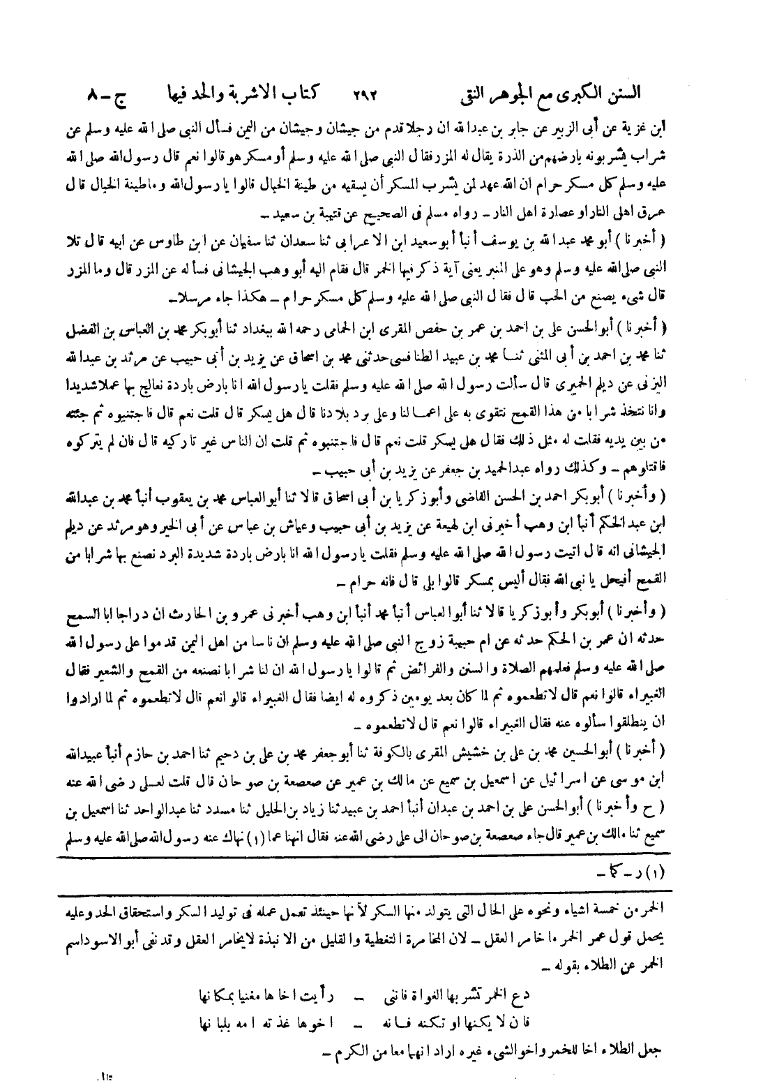 الخمر من خمسة اشياء ونحوه على الحال التى يتولد منها السكر لانها حينئذ تعمل عمله في توليد السكر واستحقاق الحد وعليه يحمل قول عمر الخمر ما خامر العقل - لان المخامرة التغطية والقليل من الانبذة لا يخامر العقل وقد نفى أبو الاسود اسم الخمر عن الطلاء بقوله - دع الخمر تشربها الغواة فانني - رأيت اخاها مغتيا بمكانها فان لا يكنها أو تكنه فانه - اخوها غذته امه بلبانها
