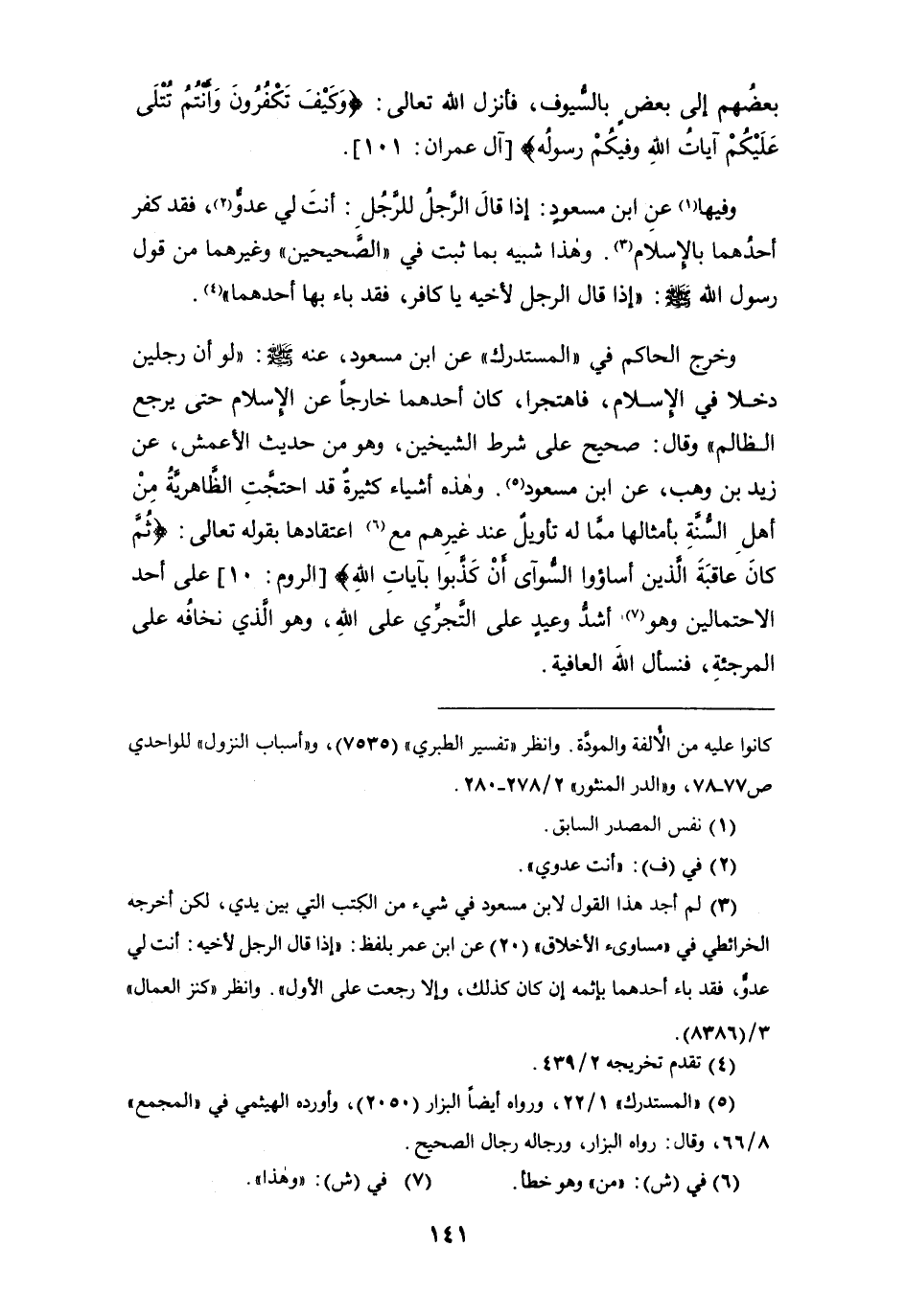 (¬3) لم أجد هذا القول لابن مسعود في شيء من الكتب التي بين يدي، لكن أخرجه الخرائطي في " مساوىء الأخلاق " (20) عن ابن عمر بلفظ: " إذا قال الرجل لأخيه: أنت لي عدوٌّ، فقد باء أحدهما بإثمه إن كان كذلك، وإلا رجعت على الأول ". وانظر " كنز العمال " 3/ (8386).
