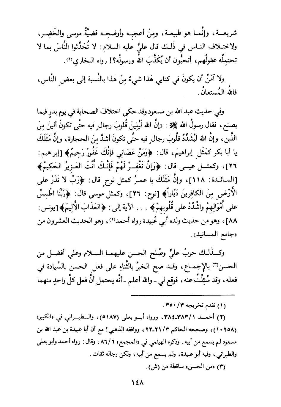 (¬2) أحمد 1/ 383 - 384، ورواه أبو يعلى (5187)، والطبراني في " الكبير " (10258)، وصححه الحاكم 3/ 21 - 22، ووافقه الذهبي! مع أن أبا عبيدة بن عبد الله بن مسعود لم يسمع من أبيه. وذكره الهيثمي في " المجمع " 6/ 86، وقال: رواه أحمد وأبو يعلى والطبراني، وفيه أبو عبيدة، ولم يسمع من أبيه، ولكن رجاله ثقات.