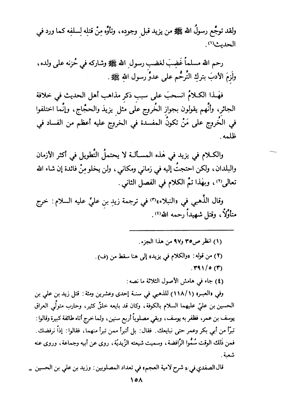 وقال الذهبي في " النبلاء " (¬3) في ترجمة زيد بن علي عليه السلام: خرج متأوِّلاً، وقتل شهيداً رحمه الله (¬4).