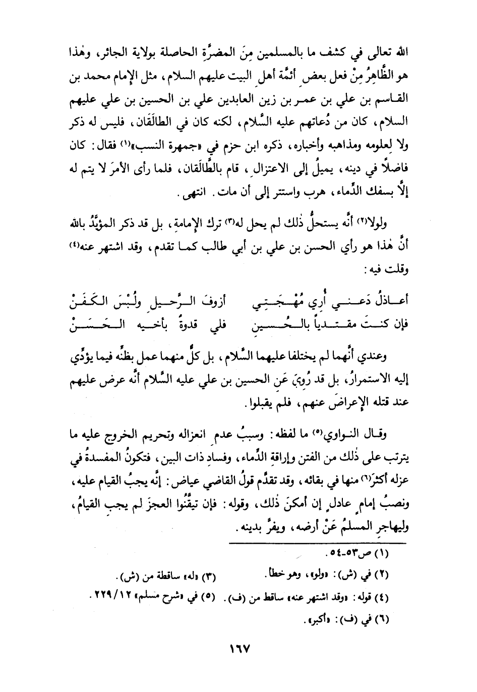 الله تعالى في كشف ما بالمسلمين من المضرة الحاصلة بولاية الجائر، وهذا هو الظاهر من فعل بعض أئمة أهل البيت عليهم السلام، مثل الإمام محمد بن القاسم بن علي بن عمر بن زين العابدين علي بن الحسين بن علي عليهم السلام، كان من دُعاتهم عليه السلام، لكنه كان في الطالَقَان، فليس له ذكر ولا لعلومه ومذاهبه وأخباره، ذكره ابن حزم في " جمهرة النسب " (¬1) فقال: كان فاضلاً في دينه، يميل إلى الاعتزال، قام بالطَّالَقان، فلما رأى الأمر لا يتم له إلا بسفك الدِّماء، هرب واستتر إلى أن مات. انتهى.