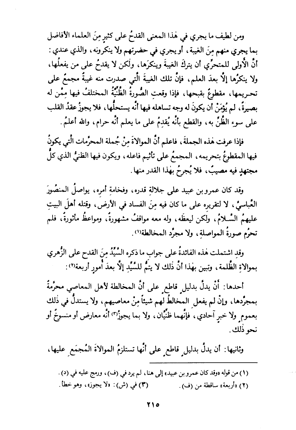 فإذا عرفت هذه الجملة، فاعلم أن الموالاة من جملة المحرمات التي يكون فيها المقطوع بتحريمه، المجمع على تأثيم فاعله، ويكون فيها الظنى الذي كل مجتهدٍ فيه مصيبٌ، فلا يجرح بهذا القدر منها.