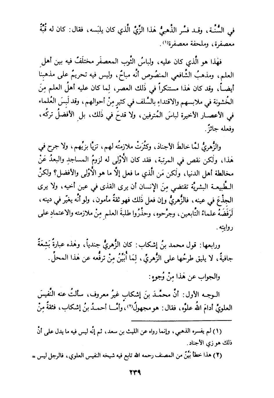 فهذا هو الذي كان عليه، ولباس الثوب المعصفر مختلفٌ فيه بين أهل العلم، ومذهب الشافعي المنصوص أنه مباحٌ، وليس فيه تحريم على مذهبنا أيضاً، وقد كان هذا مستنكراً في ذلك العصر، لما كان عليه أهل العلم من الخشونة في ملابسهم والاقتداء بالسلف في كثير من أحوالهم، وقد لبس العلماء في الأعصار الأخيرة لباس المترفين، ولا قدح في ذلك، بل الأفضل تركه، وفعله جائزٌ.