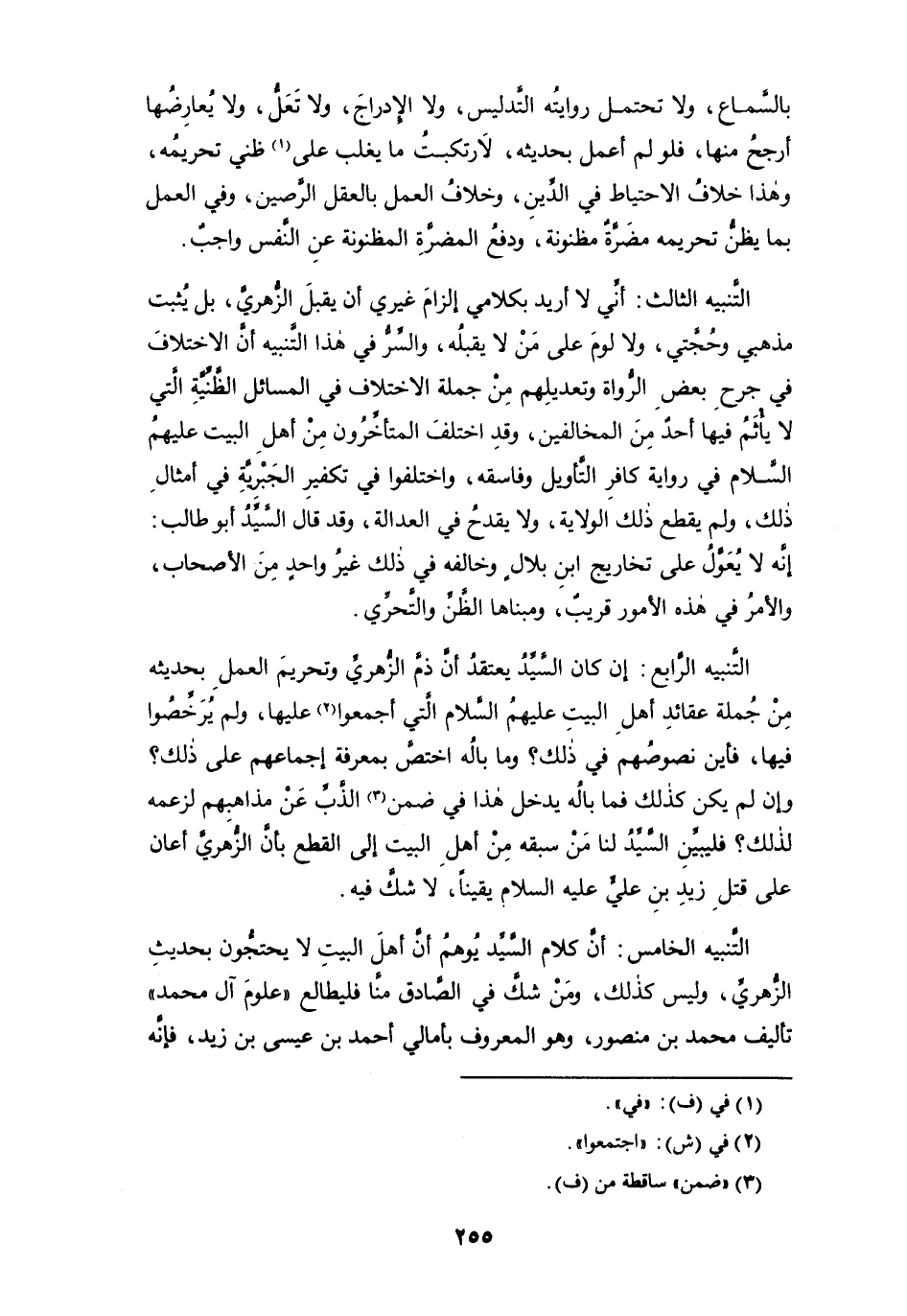 التنبيه الخامس: أن كلام السيد يُوهمُ أن أهل البيت لا يحتجُّون بحديث الزهري، وليس كذلك، ومن شك في الصادق منَّا فليطالع " علوم آل محمد " تأليف محمد بن منصور، وهو المعروف بأمالي أحمد بن عيسى بن زيد، فإنه