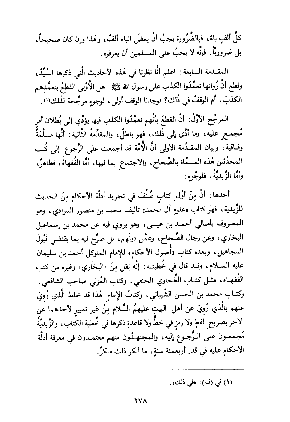 المقدمة السابعة: اعلم أنَّا نظرنا في هذه الأحاديث التي ذكرها السيد، وقطع أن رواتها تعمَّدُوا الكذب على رسول الله - صلى الله عليه وسلم -: هل الأولى القطع بتعمُّدِهم الكذب، أم الوقفُ في ذلك؟ فوجدنا الوقف أولى، لوجوهٍ مرجِّحة لذلك (¬1).