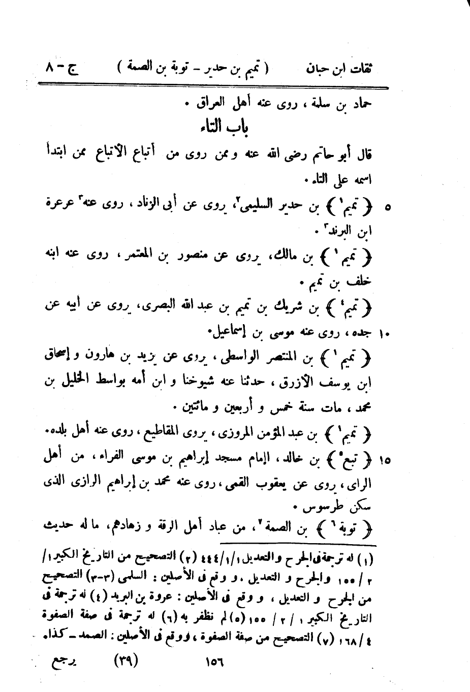 قَالَ أَبُو حَاتِم رَضِي الله عَنهُ وَمِمَّنْ روى من أَتبَاع الأتباع مِمَّن ابْتَدَأَ اسْمه على التَّاء