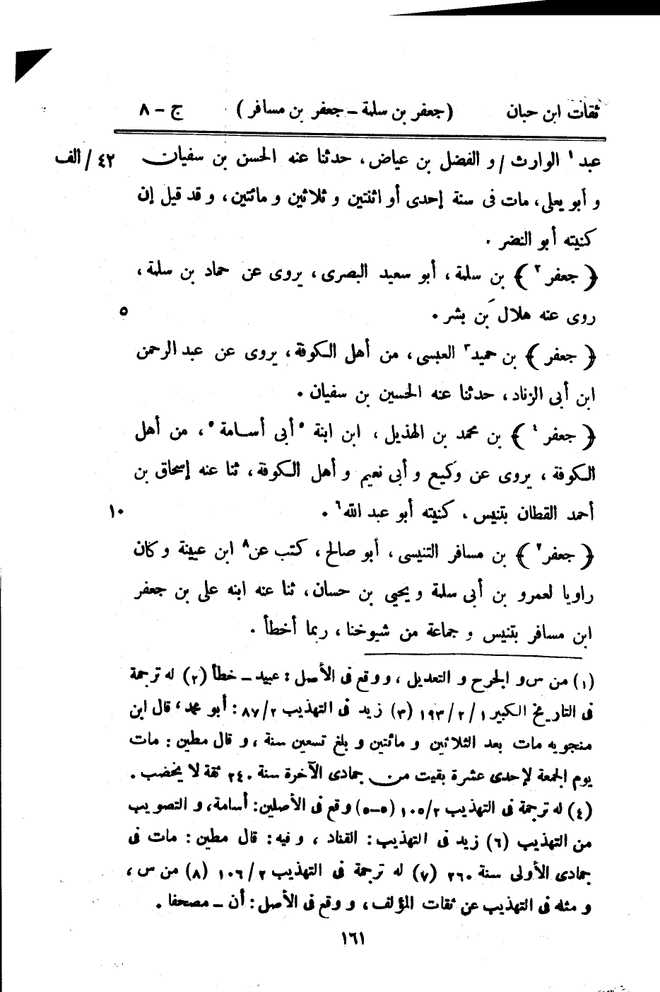 12754 - جَعْفَر بن مُسَافر التنيسِي أَبُو صَالح كتب عَن بن عُيَيْنَة وَكَانَ رَاوِيا لعَمْرو بن أبي سَلمَة وَيحيى بن حسان ثَنَا عَنهُ ابْنه عَليّ بن جَعْفَر بن مُسَافر بتنيس وَجَمَاعَة من شُيُوخنَا رُبمَا أَخطَأ