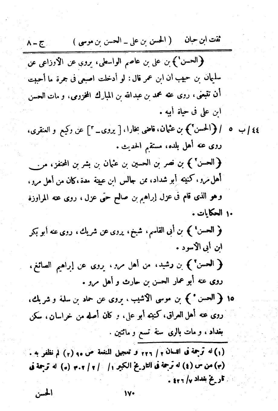 12804 - الْحسن بن مُوسَى الأشيب يروي عَن حَمَّاد بن سَلمَة وَشريك روى عَنهُ أهل الْعرَاق كنيته أَبُو على وَكَانَ أَصله من خُرَاسَان سكن بَغْدَاد وَمَات بِالريِّ سنة تسع وَمِائَتَيْنِ