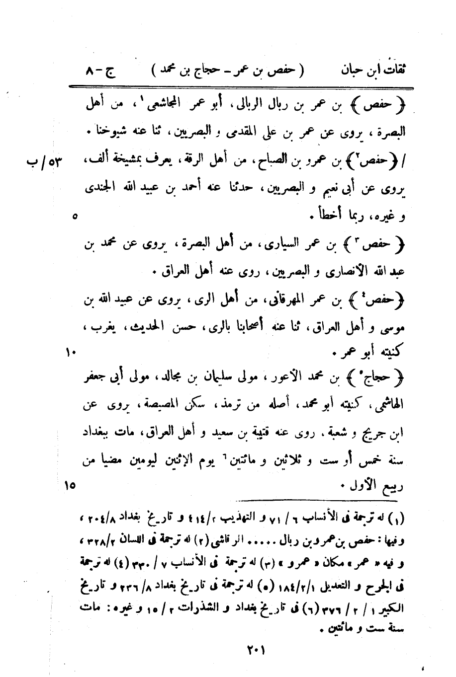 12982 - حجاج بن مُحَمَّد الْأَعْوَر مولى سُلَيْمَان بن مجَالد مولى أبي جَعْفَر الْهَاشِمِي كنيته أَبُو مُحَمَّد أَصله من ترمذ سكن المصيصة يرْوى عَن بن جريج وَشعْبَة روى عَنهُ قُتَيْبَة بن سعيد وَأهل الْعرَاق مَاتَ بِبَغْدَاد سنة خمس أَو سِتّ وَثَلَاثِينَ وَمِائَتَيْنِ يَوْم الْإِثْنَيْنِ ليومين مضيا من ربيع الأول